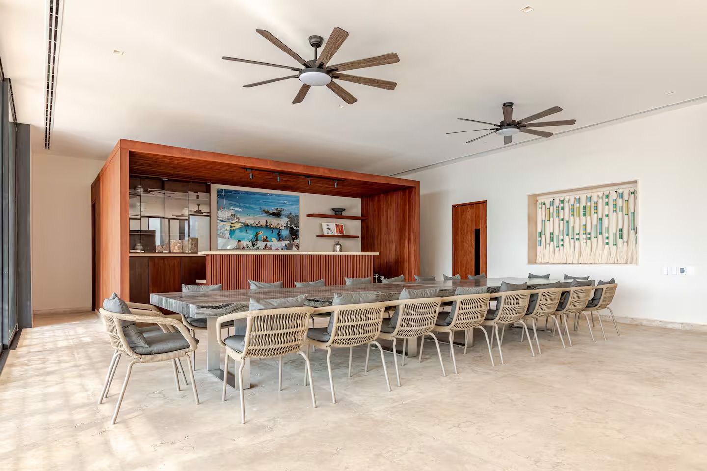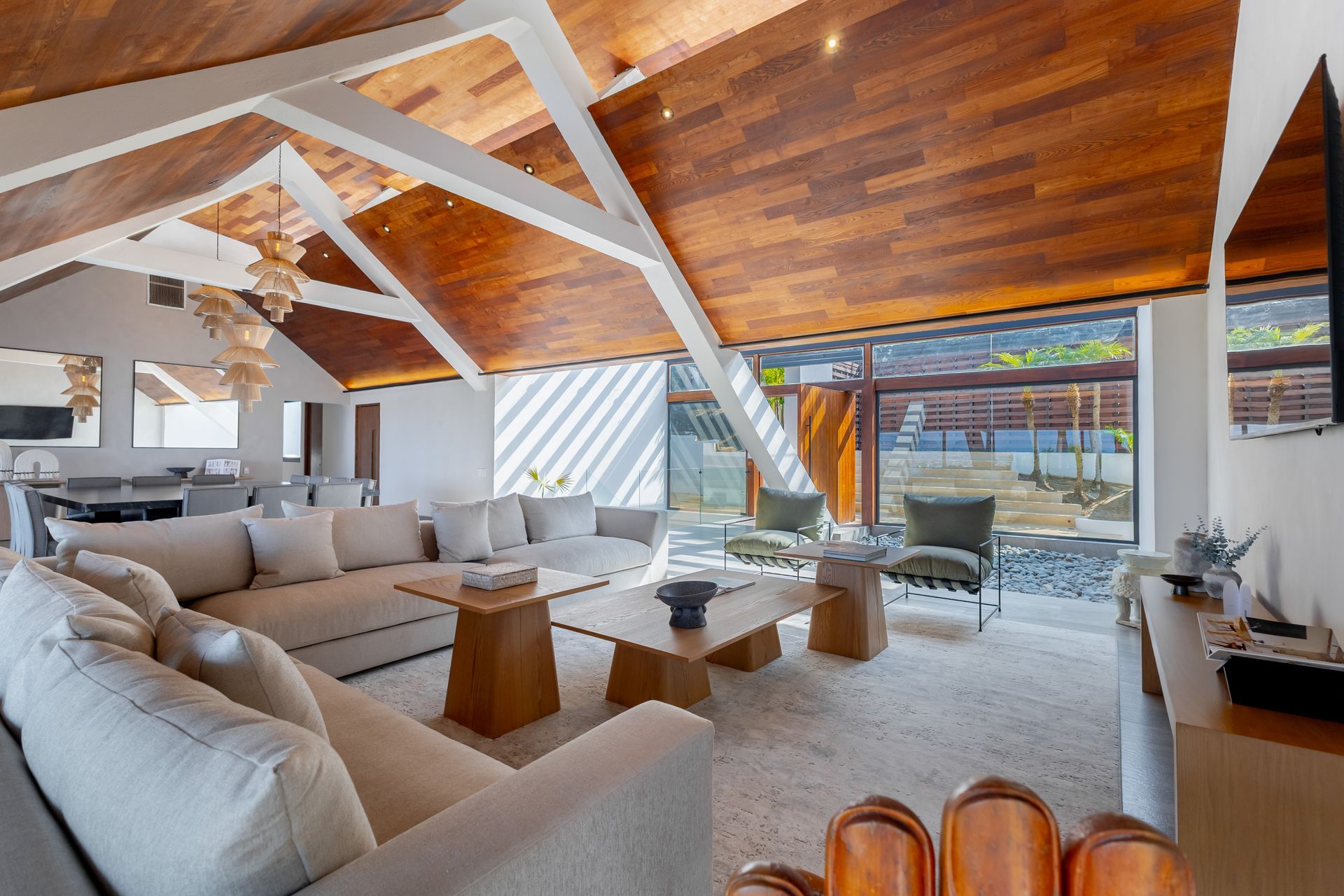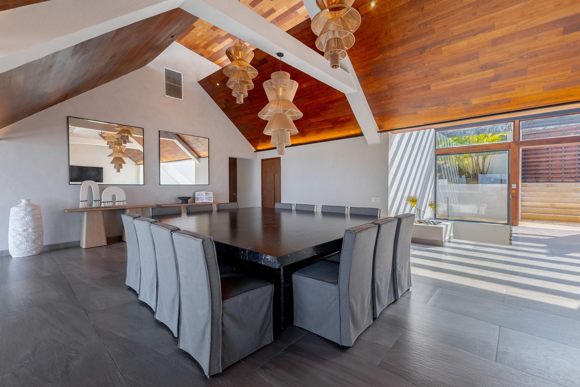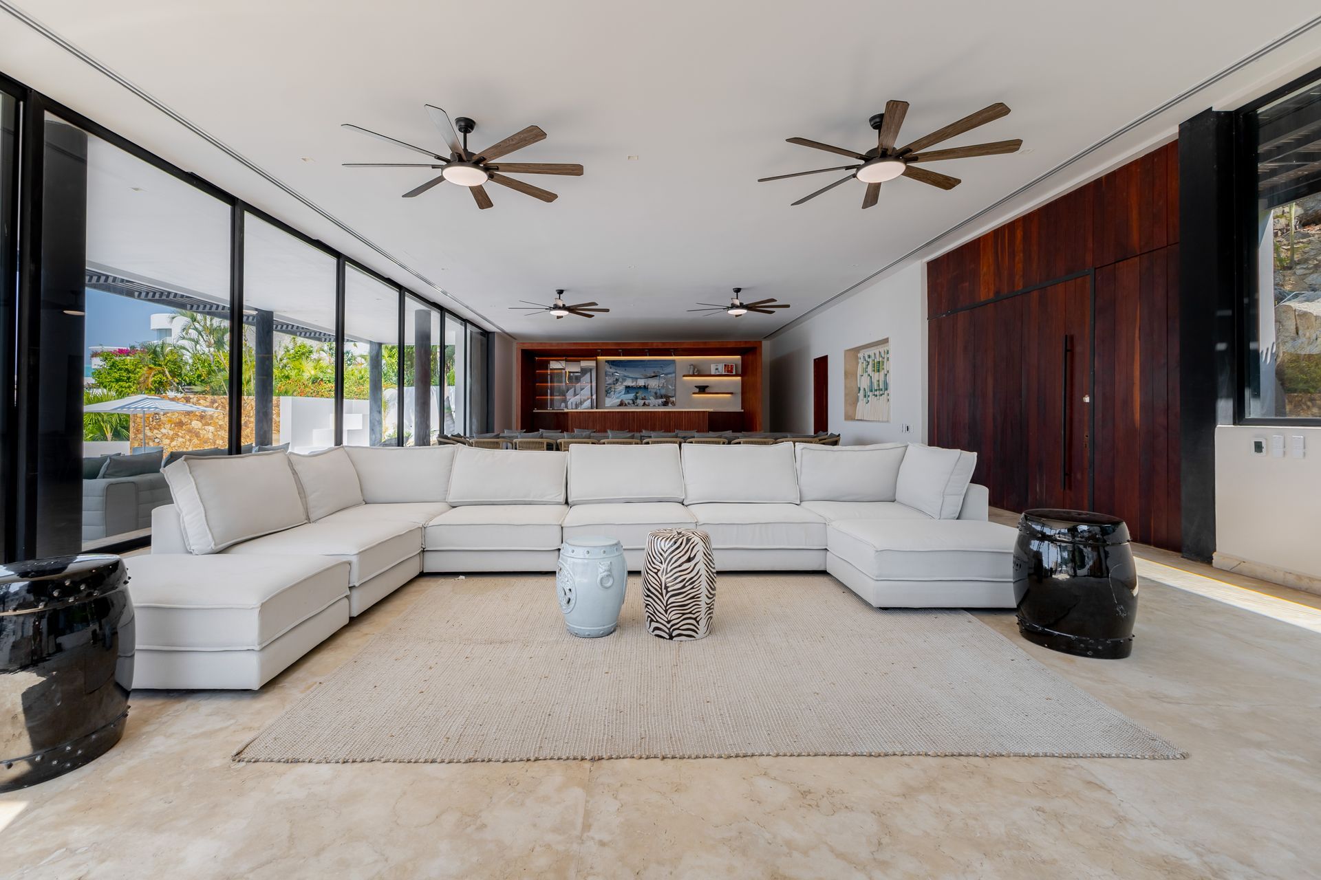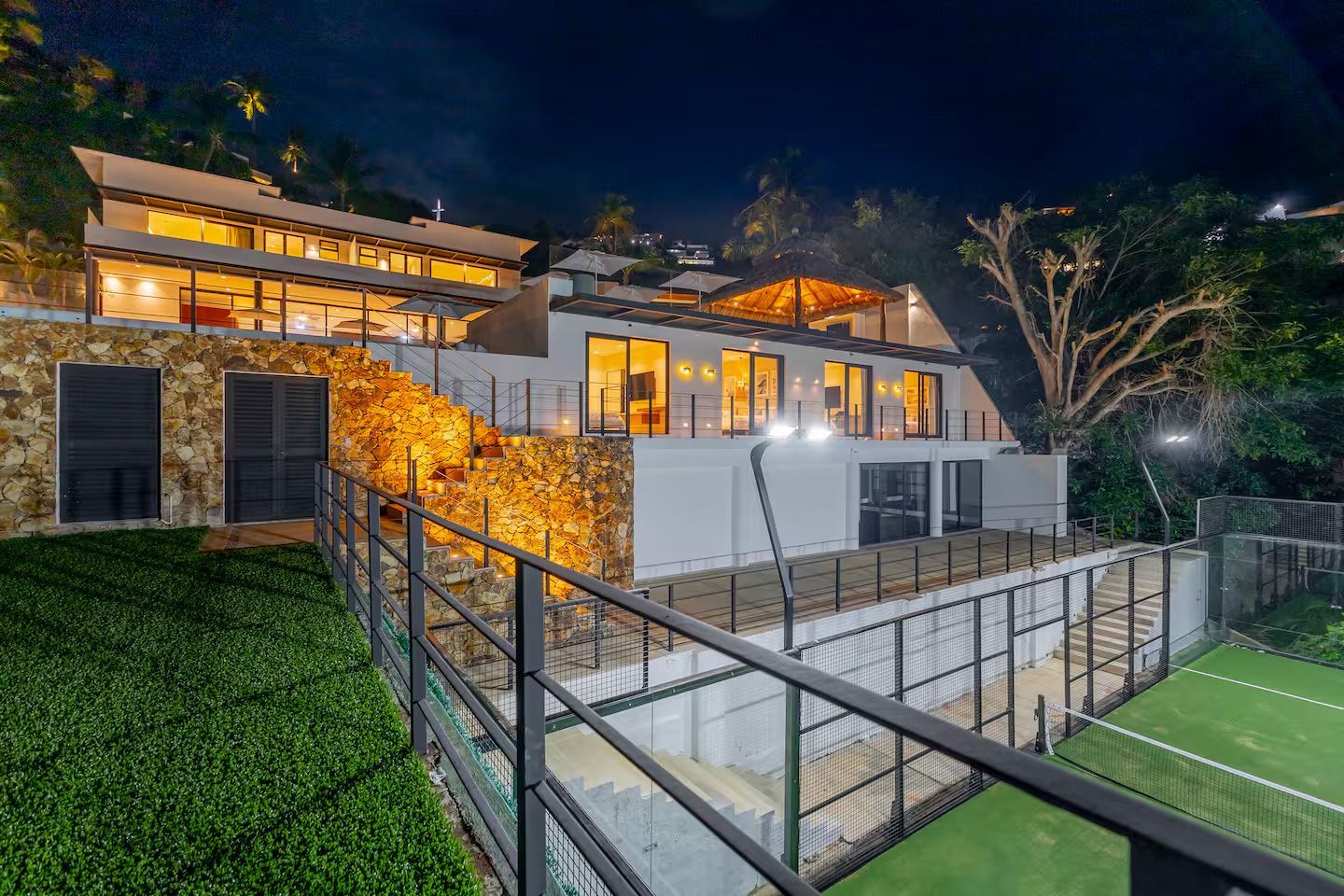 Featuring 13 bedrooms across two independent structures, the villa offers exceptional privacy, generous open spaces, and breathtaking ocean views. Expansive terraces and thoughtfully designed entertainment areas make it the perfect setting for private celebrations, high-profile gatherings, or refined family retreats.