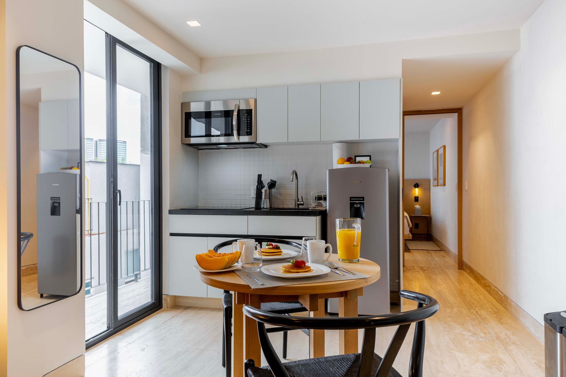 Guests also enjoy access to the rooftop terrace, with panoramic views of the Polanco skyline — the ideal space to relax or connect after a day in the city.
