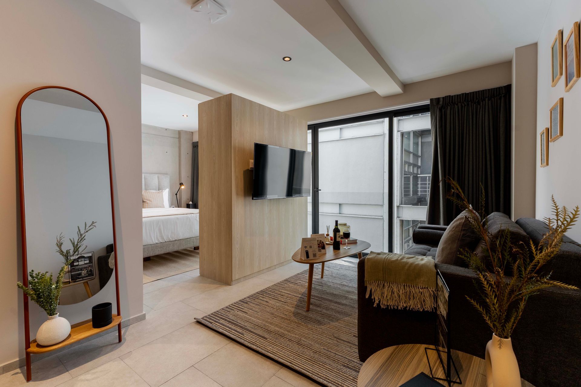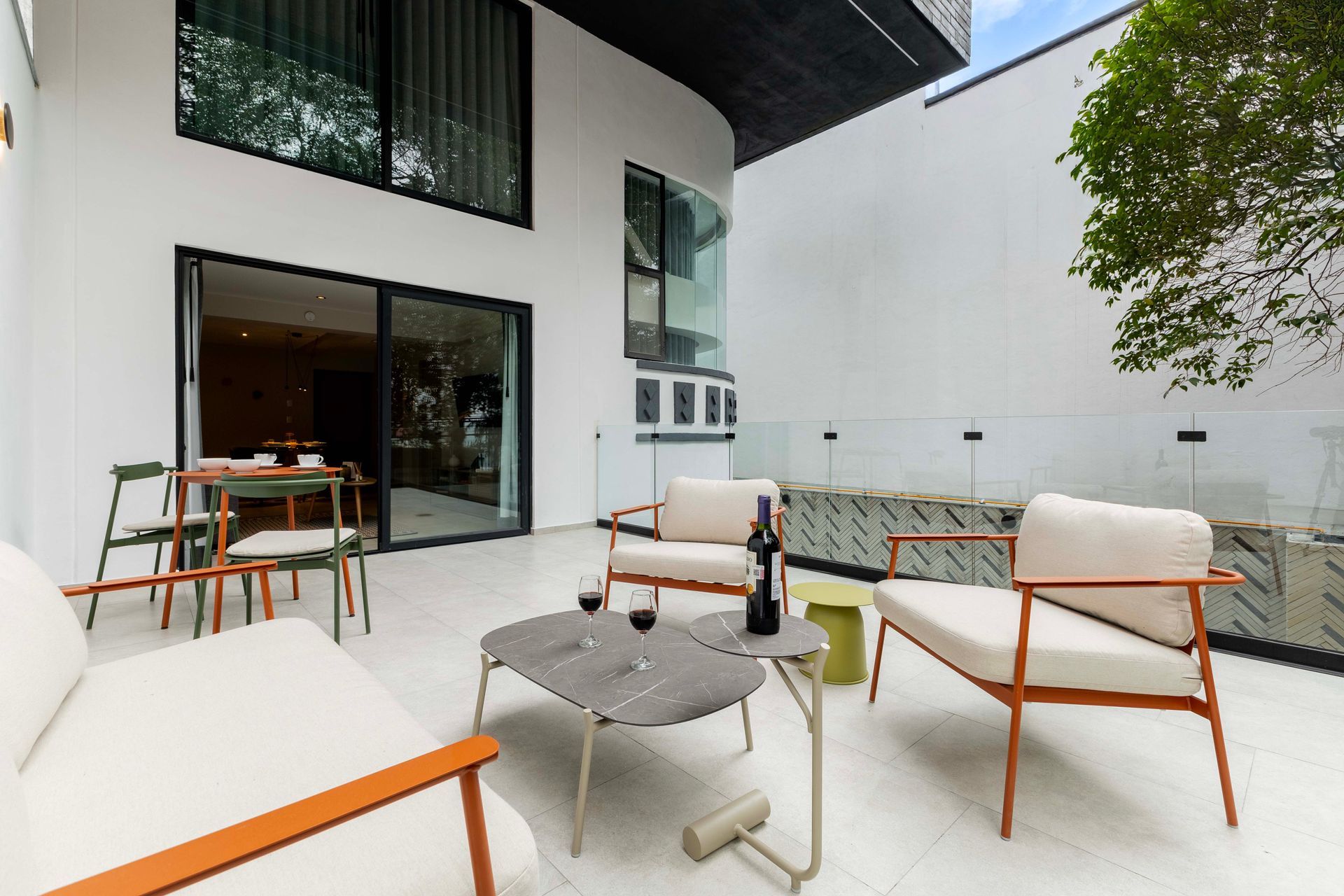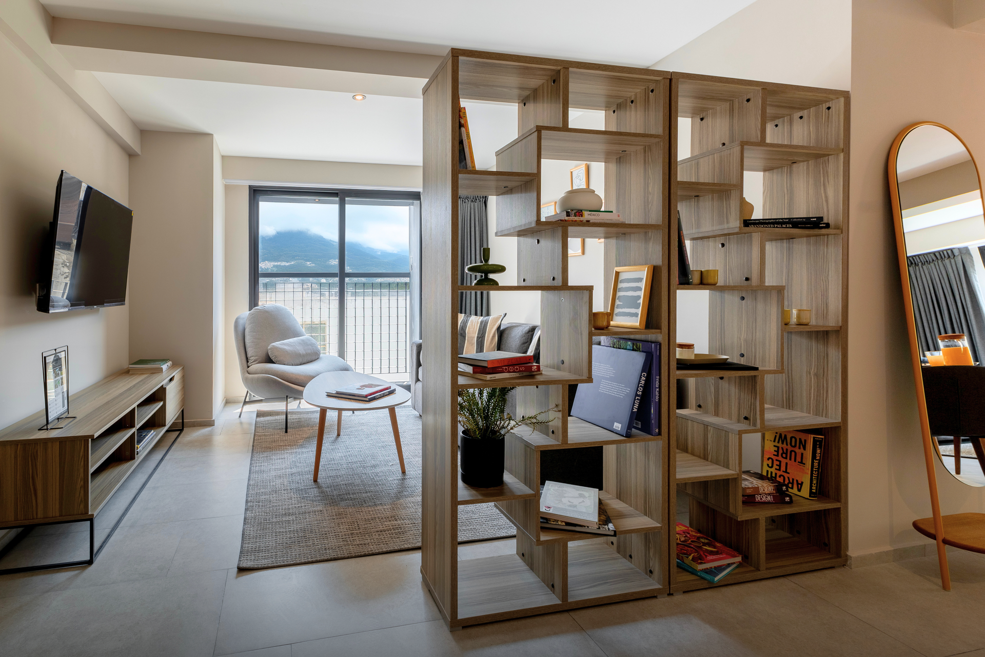 The interiors stand out for their contemporary design with warm details, thoughtfully created to provide comfort and style. Each unit features a kitchenette, dining area, living room, workspace, and air conditioning — making it the ideal retreat for business trips or leisure getaways.