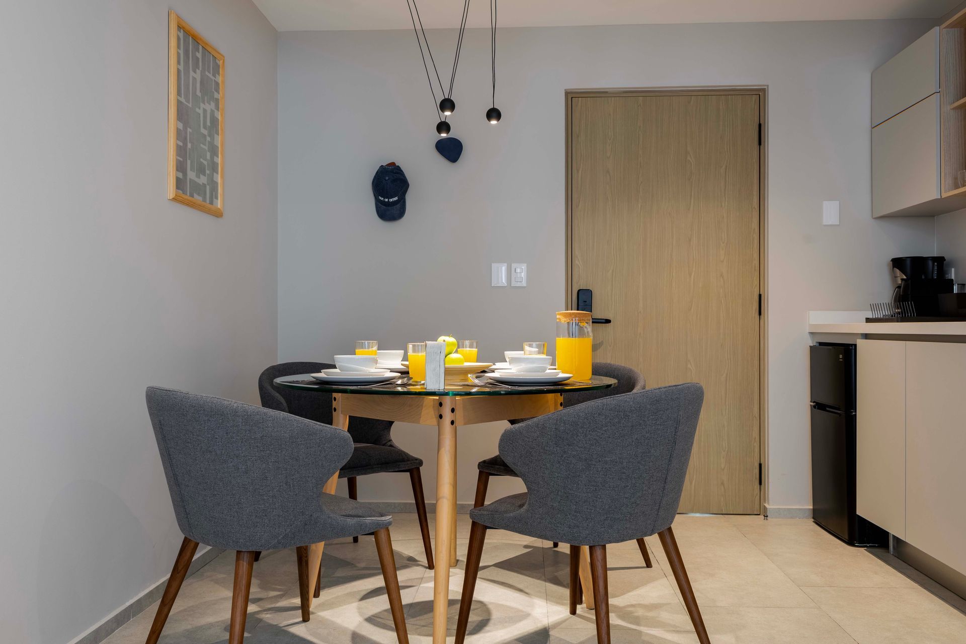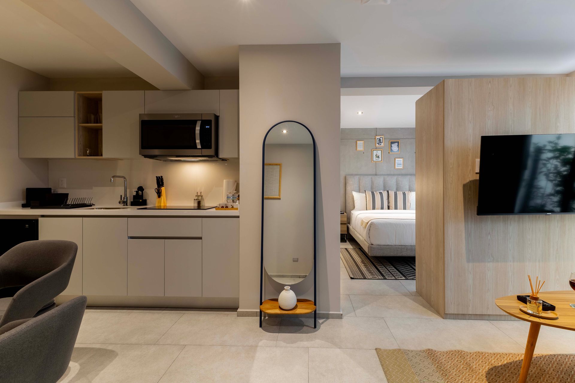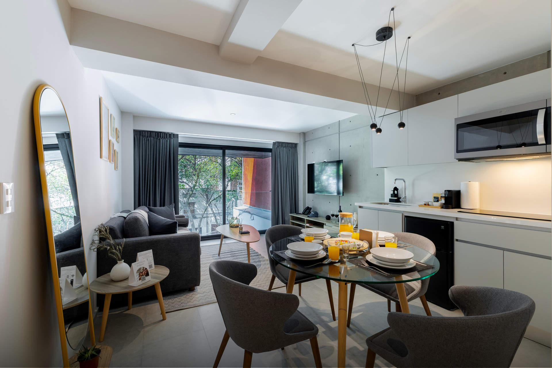 Hipódromo Condesa welcomes you to a space where modern living meets the charm of one of Mexico City’s most vibrant neighborhoods. Located on Chilpancingo 28, this boutique building offers fully equipped one-bedroom suites, perfect for both short and extended stays.