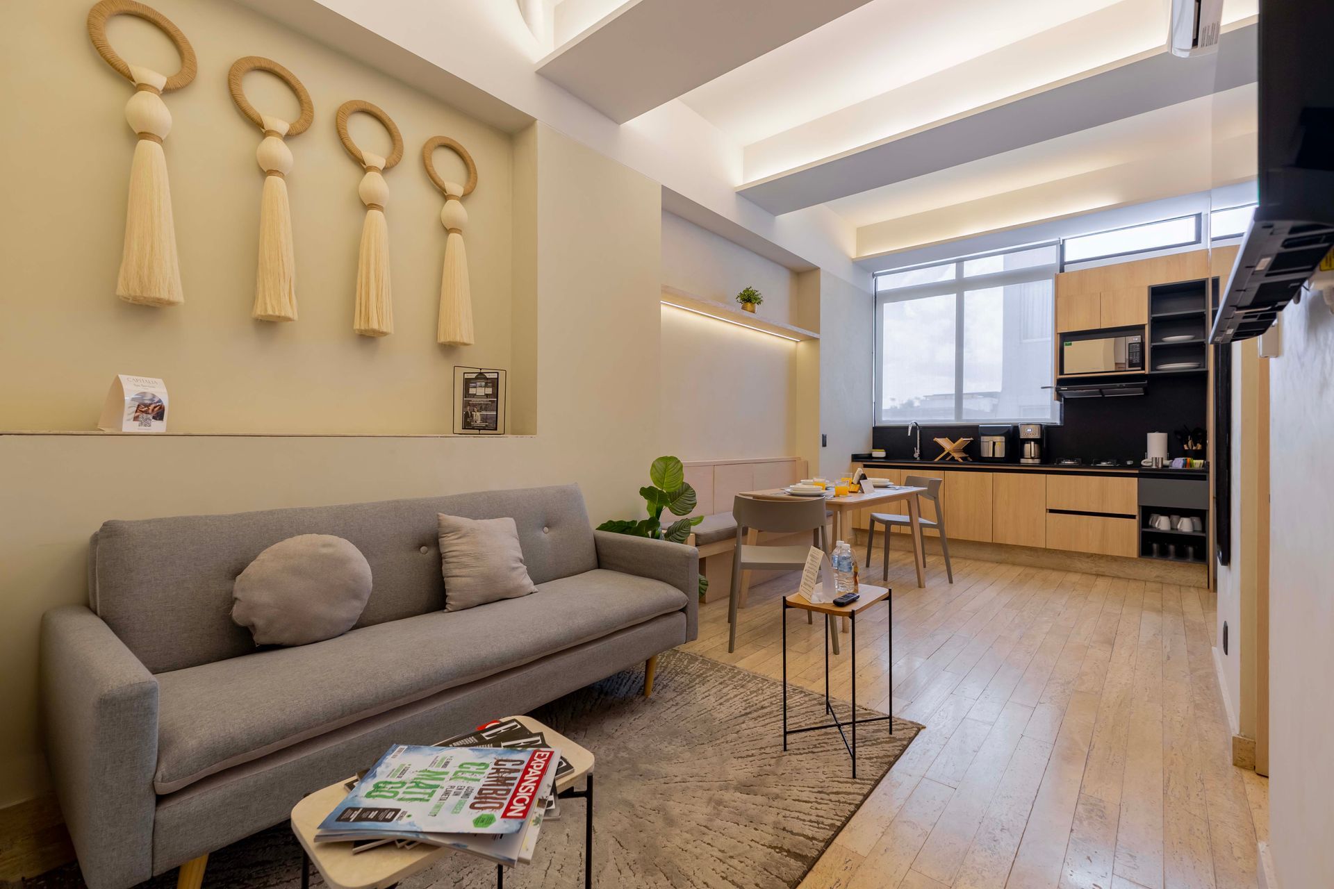 Each unit is designed with thoughtful details — from the fully equipped kitchen to the dining and lounge areas — creating a refined home experience with hotel-level service. Enjoy exclusive amenities such as a rooftop terrace with panoramic views, a business center with high-speed Wi-Fi, and on-site laundry facilities for added convenience.