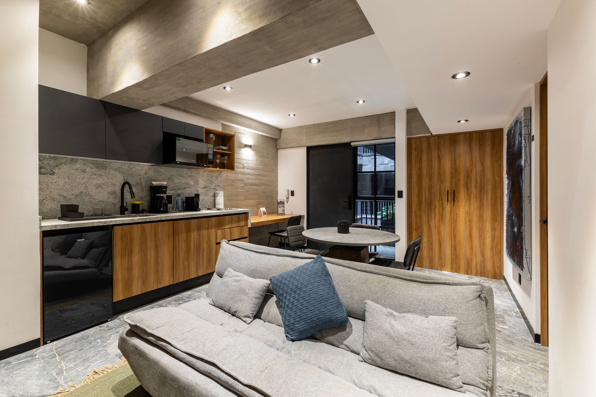 Welcome to Park Condesa by Capitalia, one of our flagship properties in Mexico City. Located in the heart of La Condesa, this residence offers private rooms, studios, and 1- and 2-bedroom apartments, each designed to balance comfort, functionality, and style.