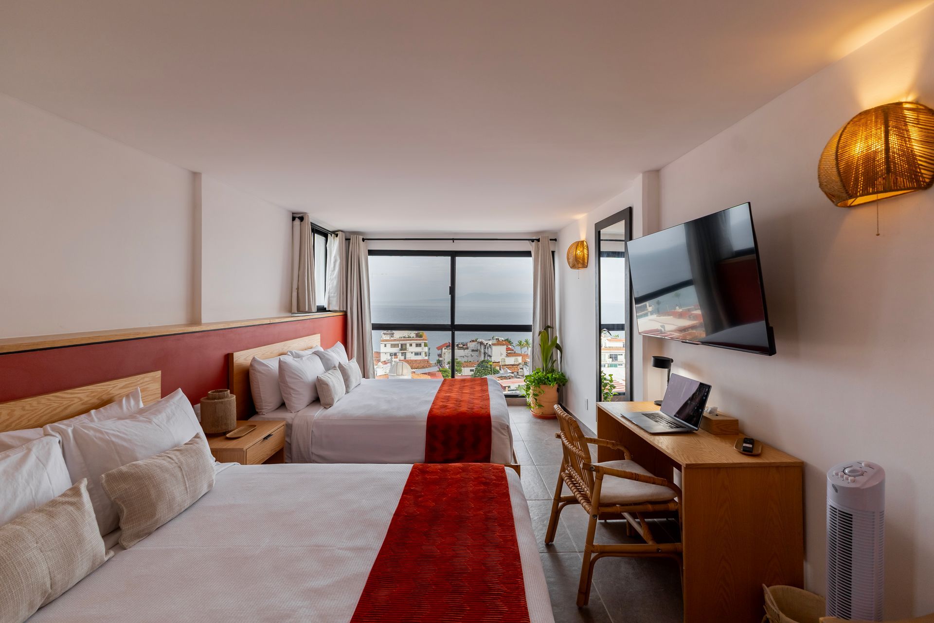 The building features private suites —with one or two beds— as well as unique options like penthouses, lockoffs, and oceanview terraces. All units include air conditioning, a dedicated work desk, and open storage, creating a comfortable and practical atmosphere for short or extended stays.