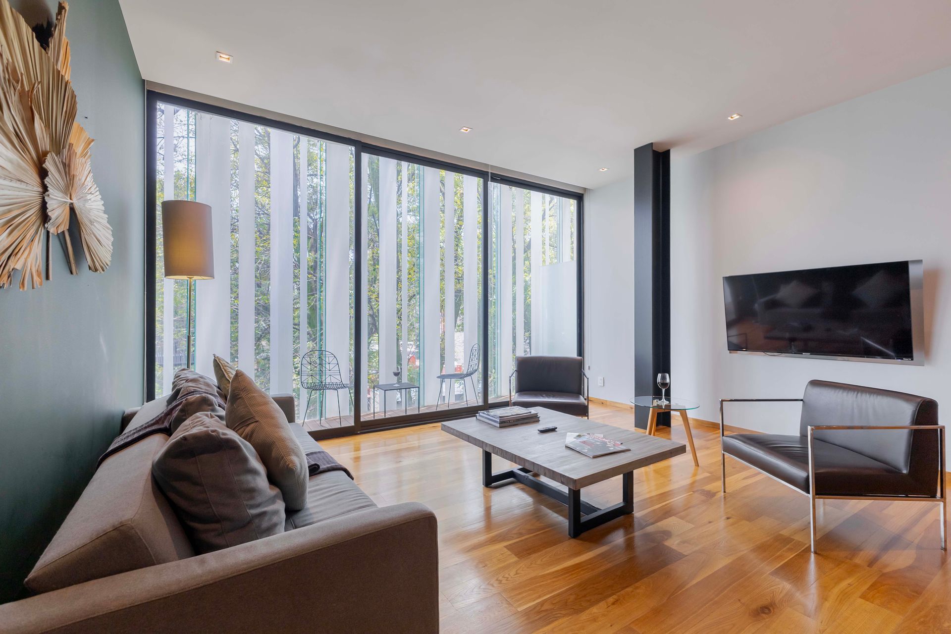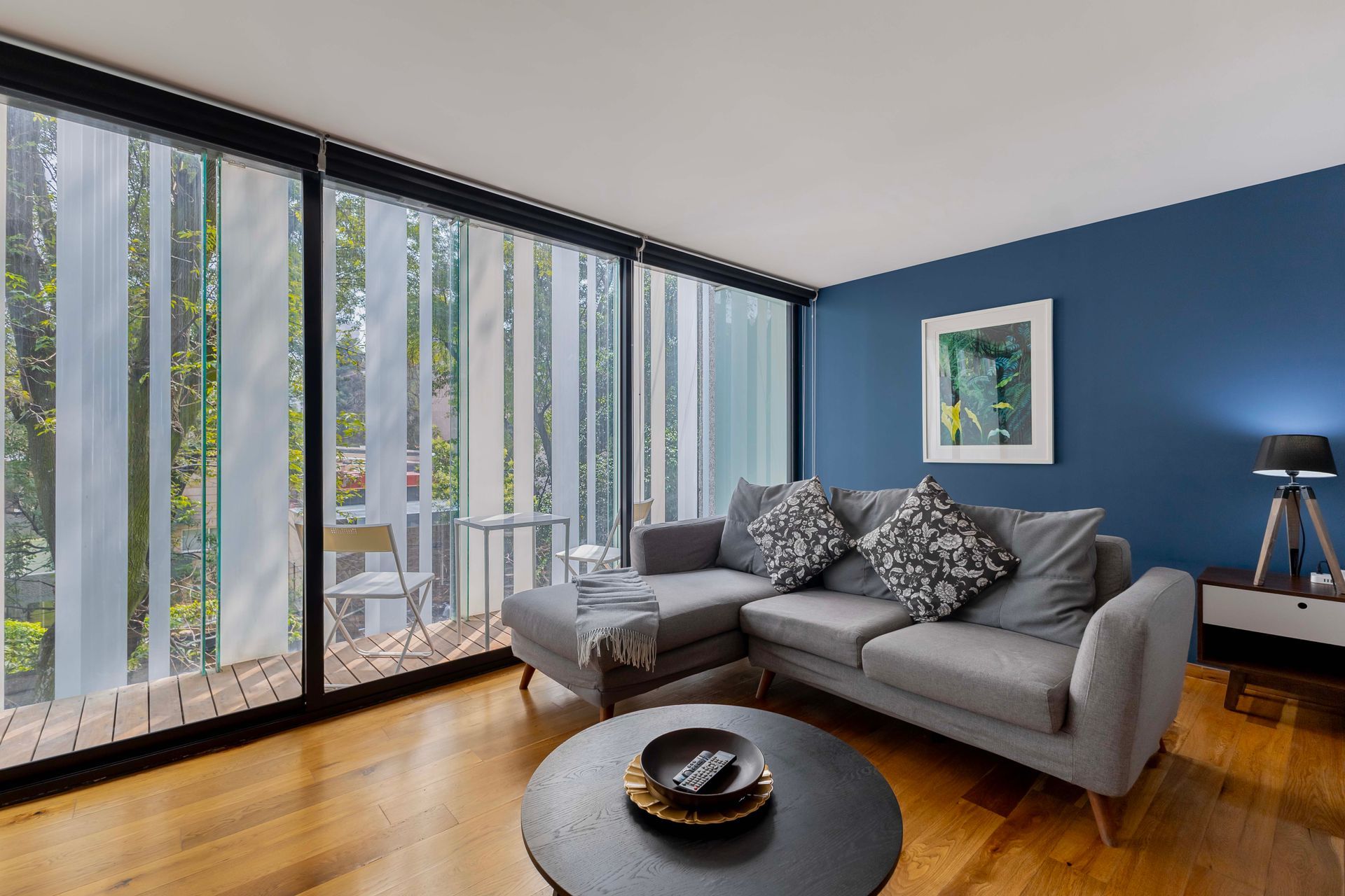 Guests enjoy access to a welcoming lobby, self-service laundry, and 24/7 security, in a pet-friendly environment that delivers the perfect blend of comfort, privacy, and practicality in the heart of Mexico City.